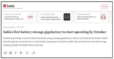 gigafactory was positioned as a catalyst for the clean energy and EV revolution driving J&K location as a big source of local employment.