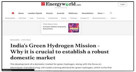 adoption, Green Hydrogen, Solar, RE and policy reforms.